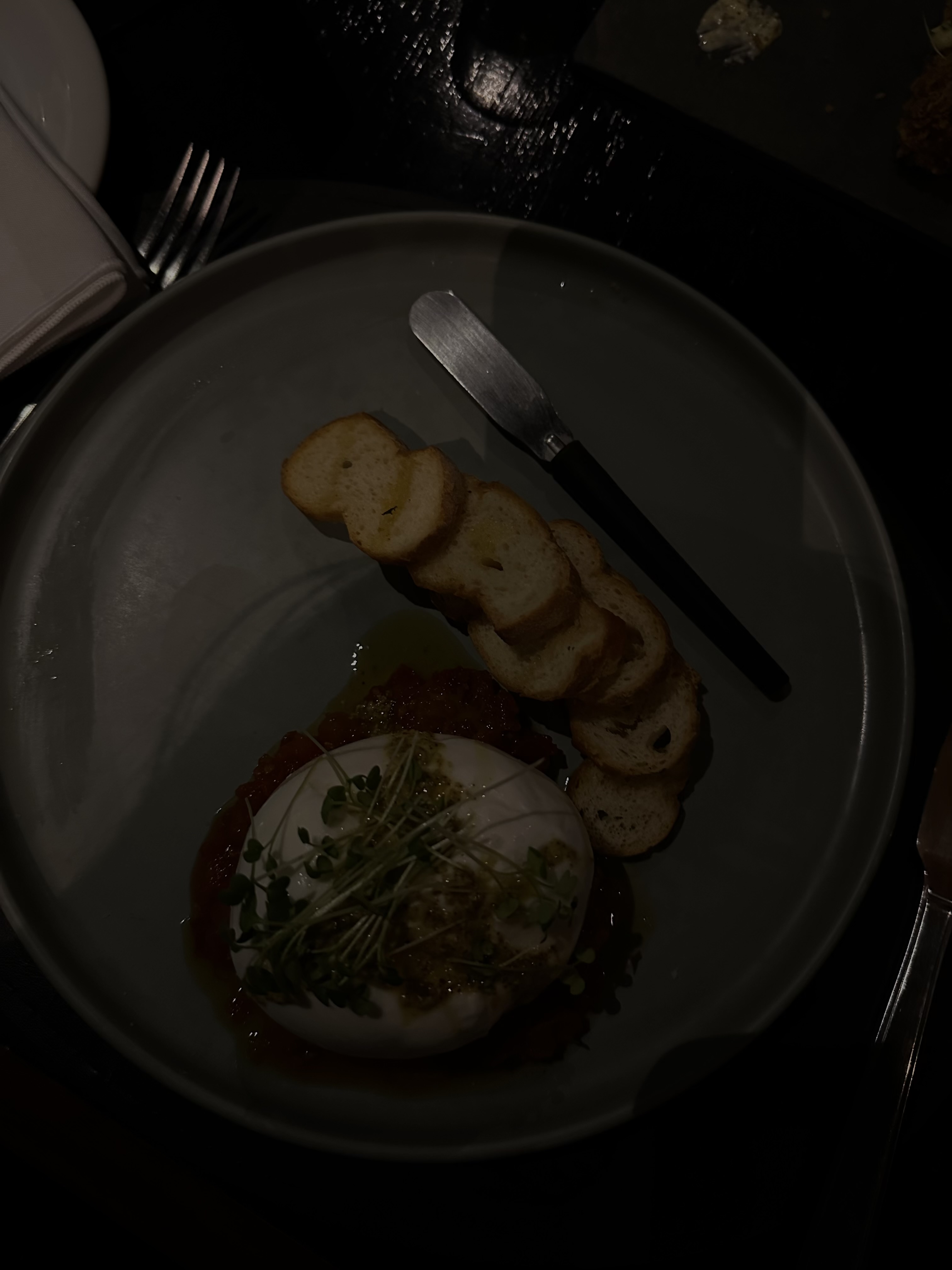 A vista é de tirar o fôlego, a comida é deliciosa e, claro, a companhia tornou tudo inesquecível. Para começar, pedi um Aperol Spritz enquanto esperava a entrada: uma burrata fresquinha e bem delícia.